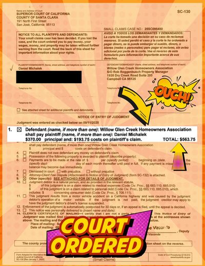 On September 11, 2025, Judge Christine Copeland entered a judgment for $563.75 in my favor against the Association over a completely avoidable account error that the Board refused to correct or even meaningfully discuss.